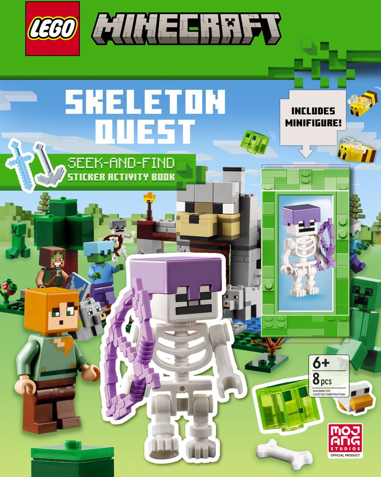 Enter the creative worlds of LEGO® and Minecraft® with this 32-page Skeleton Quest book. The softcover book features images of action-packed LEGO sets with fun details and objects to find as well as mazes, activities and more. Readers can also create their own scenes with the included stickers, adding to the fun and adventure. And for added hands-on fun, the book comes with a LEGO Minecraft Skeleton minifigure wearing a helmet and carrying a bow and arrow. Great gift idea for ages 5 and up.